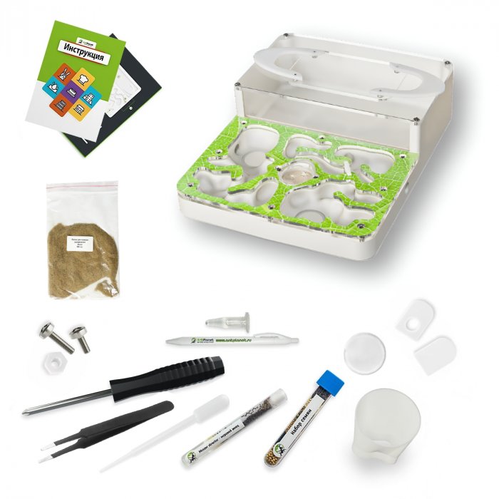Комплект муравьиной фермы с муравьями и кормом. Размеры: 220х170х68 мм.