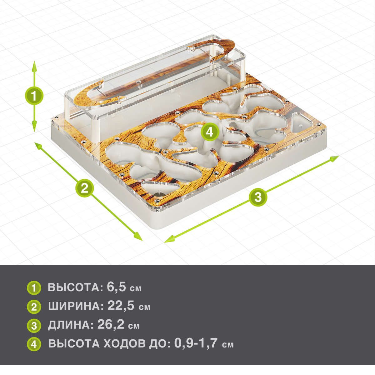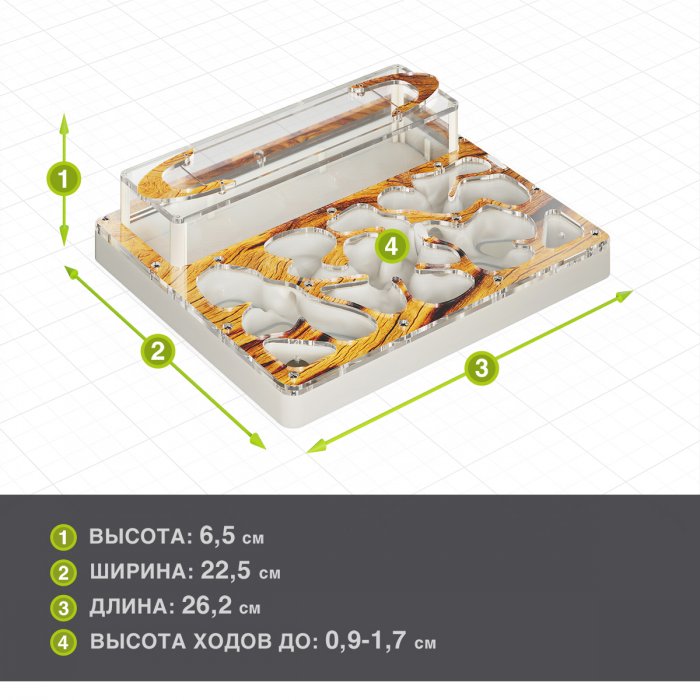 Для этого наш отдел качества следит за тем, чтобы у формикария была плотная крышечка, отсутствовали щели, и муравьи не могли выбраться погулять за пределы домика.