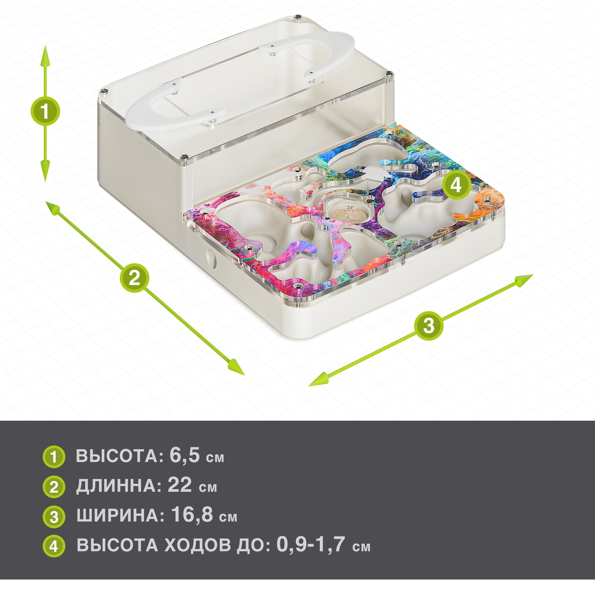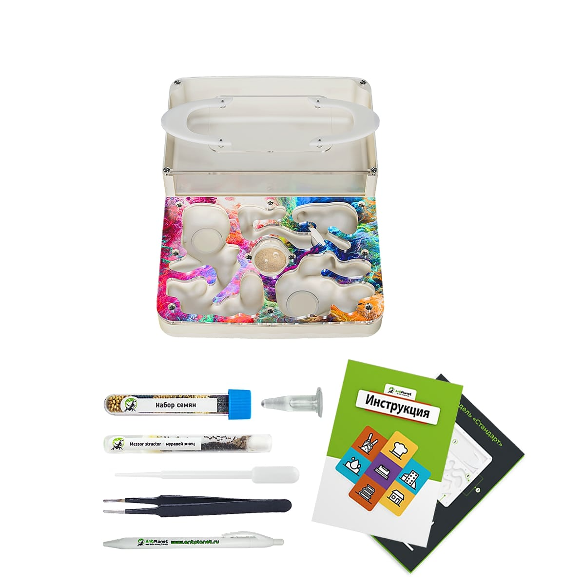 Комплект муравьиной фермы с муравьями и кормом. Размеры: 220х170х68 мм.