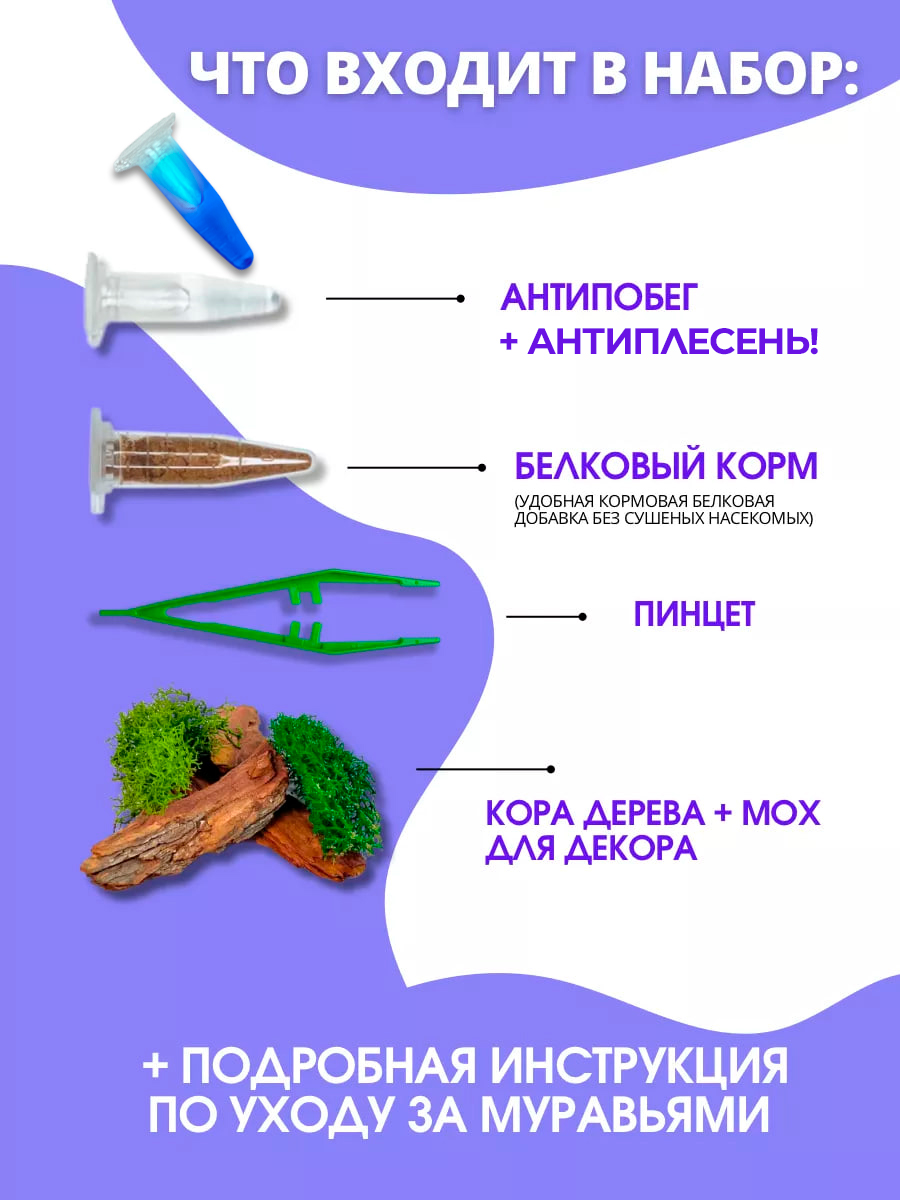 Комплект большой муравьиной фермой с муравьями и кормом.