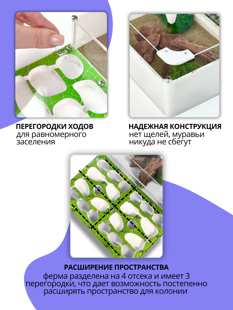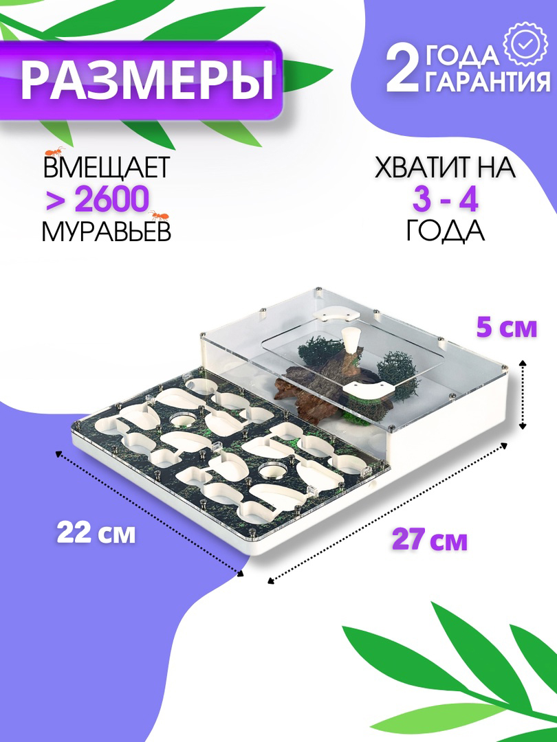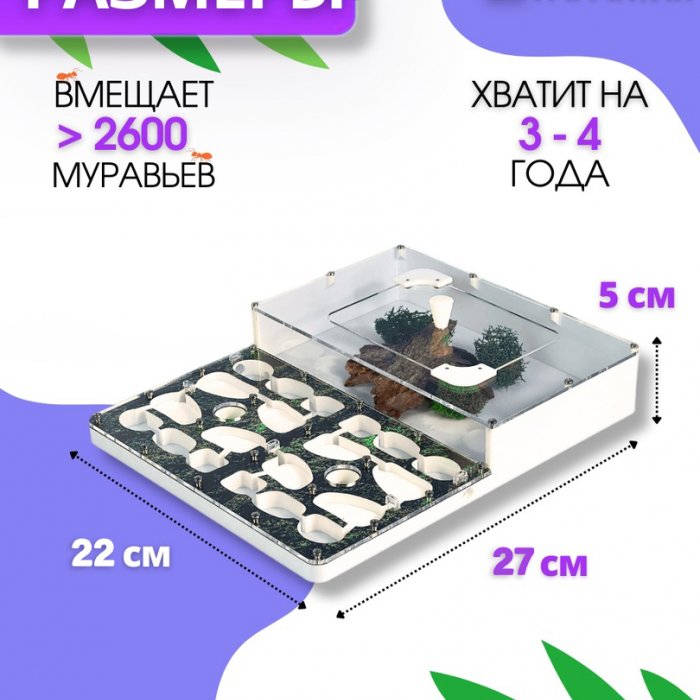 - Вместимость фермы более 2600 муравьев!