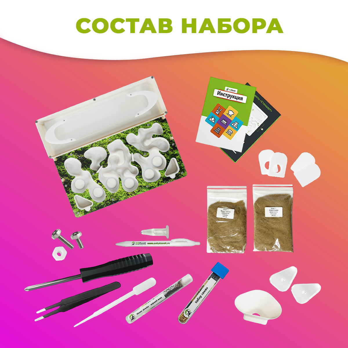 Научный набор с муравьиной фермой СТАНДАРТ Sand PRO "Горный мох"