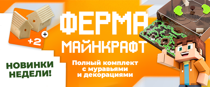 Цена фермы зависит от размера. Компактный мини или продвинутый стандарт, решать вам. У нас собственное производство, поэтому в магазине AntPlanet цены на муравьиные фермы ниже рыночных. В комплект входит колония муравьев-жнецов, запас корма на год, средство антипобег, пинцет для аккуратного ухода, пипетка для увлажнения. Пробирка с муравьями упакована в защитную трубку. Внутри пробирки запас корма и воды на 2 - 3 недели.